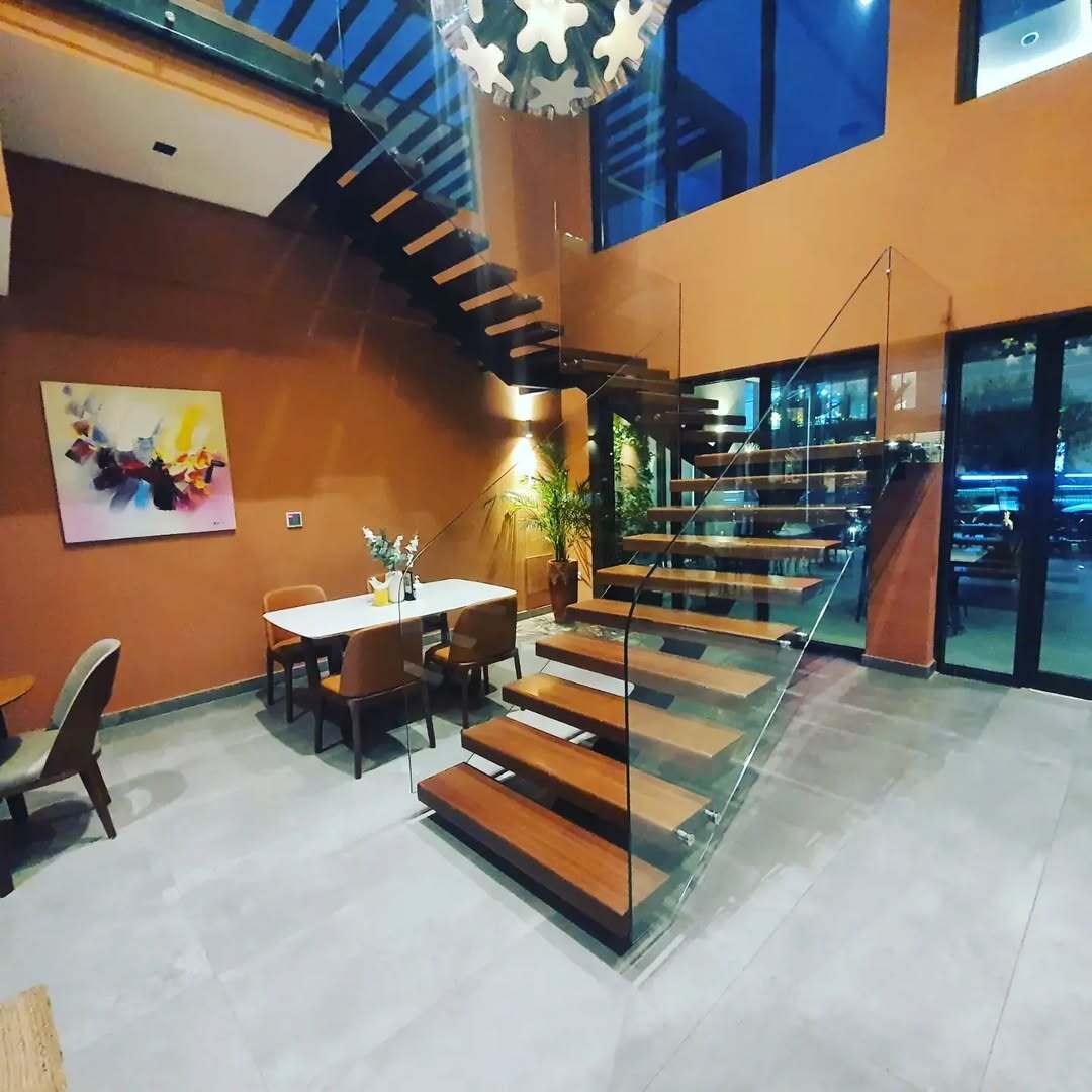 Wooden Staircase with Glass